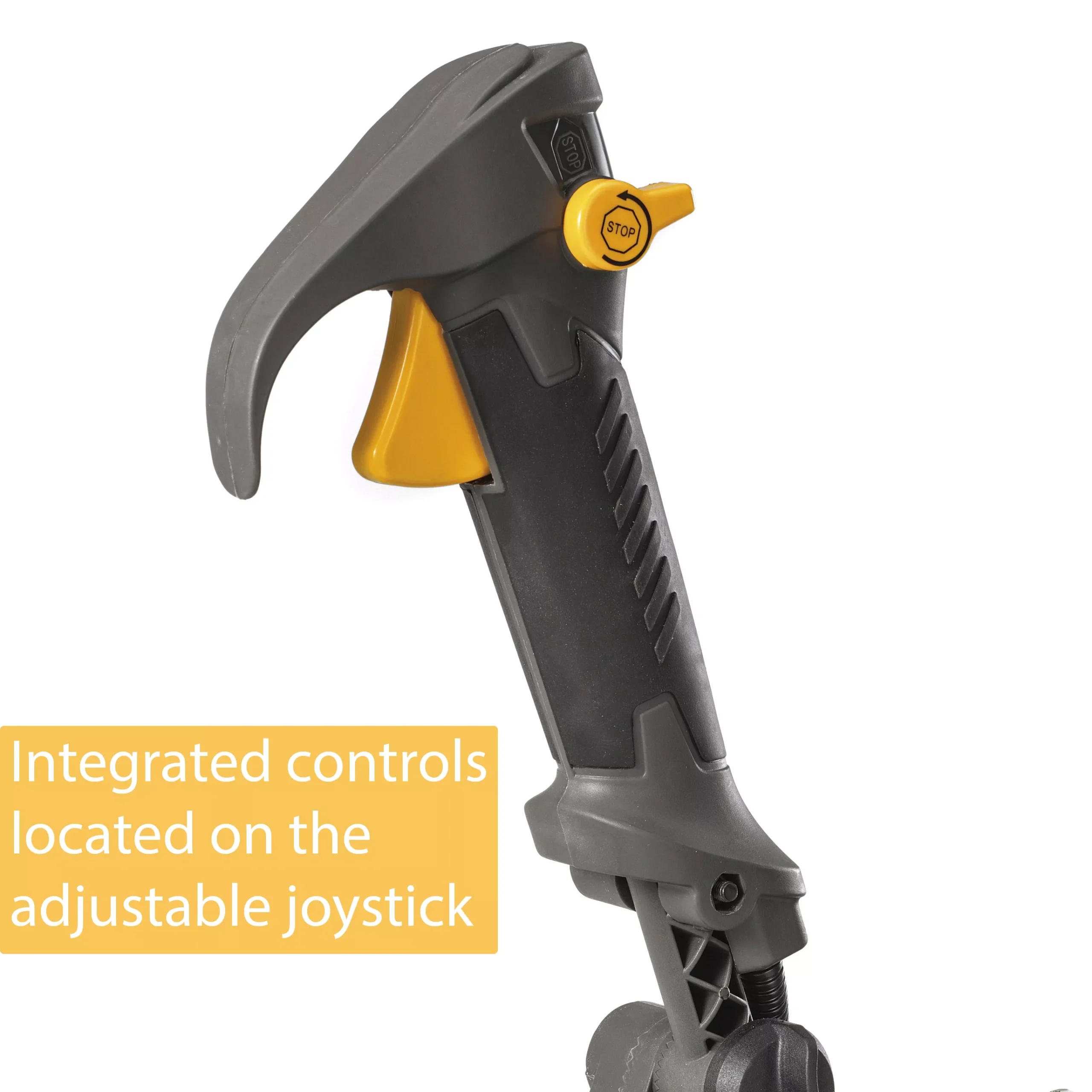 - Integrated controls on the adjustable joystick